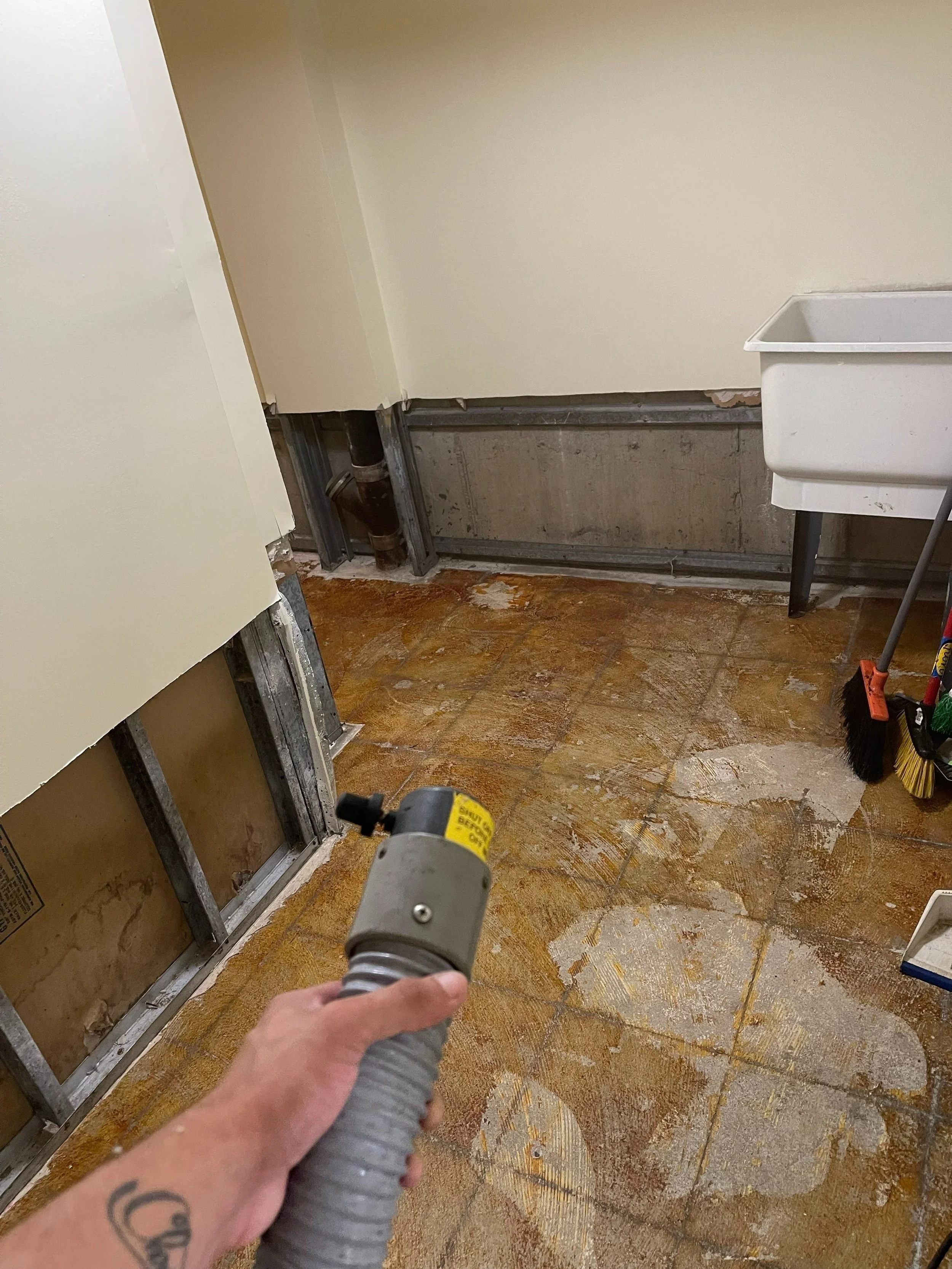 Remediation Plan: Perimeter 2’ Flood cuts on affected Drywall , Removal of Insulation , Removal of Vinyl Flooring, Removal of Baseboards & Reconstruct affected areas to previous state